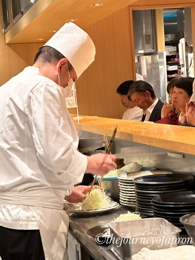 可能我不太懂得如何吃出高麗菜絲的美味,盤內剩下不少,別小瞧這不起眼的菜絲,它可是店家引以為傲的要角之一,我的確有注意到日本當地食客幾乎都將生菜完食,朋友們造訪時可以用心試試這細切高麗菜,感覺一下自己和生高麗菜絲的親密程度。