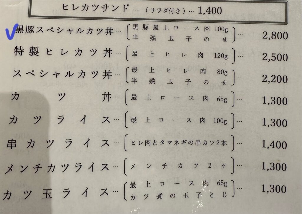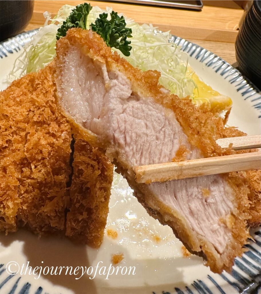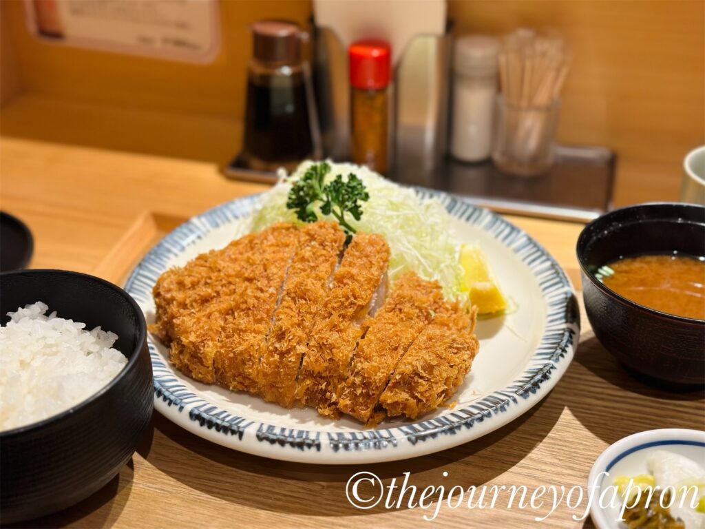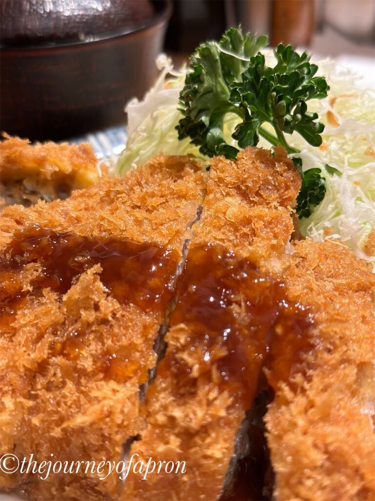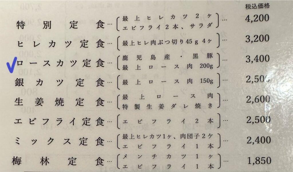 根據肉質也有不一樣的選擇,喜歡偏瘦的朋友挑ロース,要再更瘦一點的話就選ヒレ。ロースカツ定食(里肌肉套餐)是整塊200克豬排炸好後再分切,ヒレカツ定食(豬柳肉套餐)是四塊各45克的炸豬柳,口感不太一樣,喜愛肉汁豐沛一些的話,小圍裙建議選擇ロース。如果預算有限的話就直接選低價的梅林定食或是カツ丼,在有信譽的老舖吃飯,其實怎麼選都好吃。