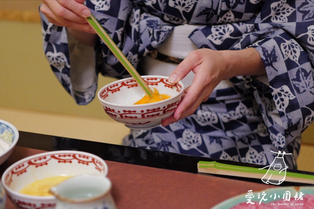 生蛋液絕對是壽喜燒的靈魂,中和醬汁的濃稠感、再增添絲滑度,缺少了它,整體結構便會失去平衡與完整。