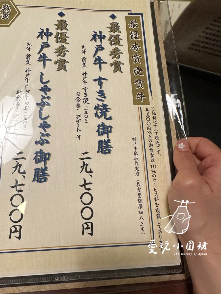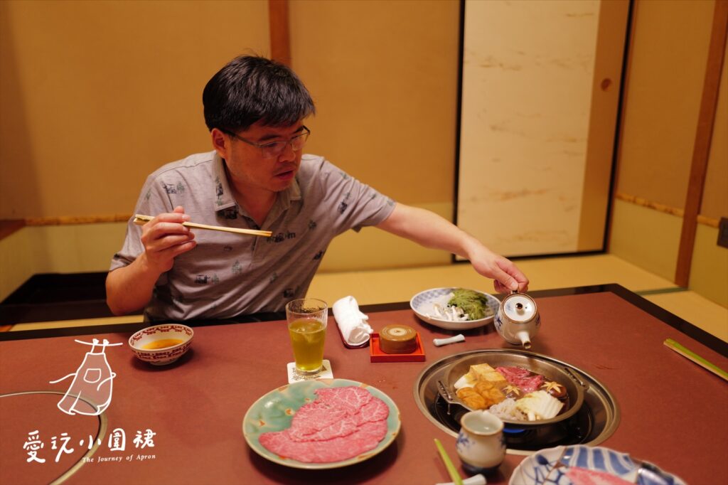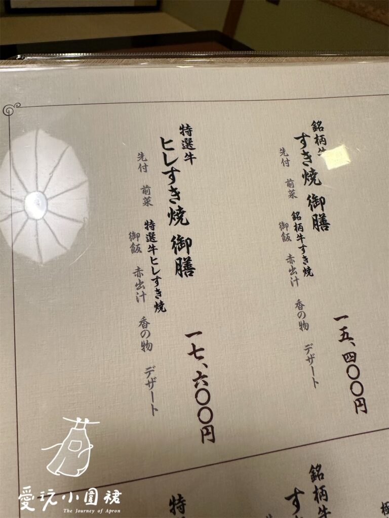 訂位時挑選單人超過日幣15,400以上的餐點即能享有獨立空間(入店後可以再調整細項),17,600以上可選擇更舒適的特別室,我和蘋果匠最後選擇一份最高單價的最優秀賞 神戶牛 すき焼 御膳,以及一份特選牛 ヒレすき焼 御膳。