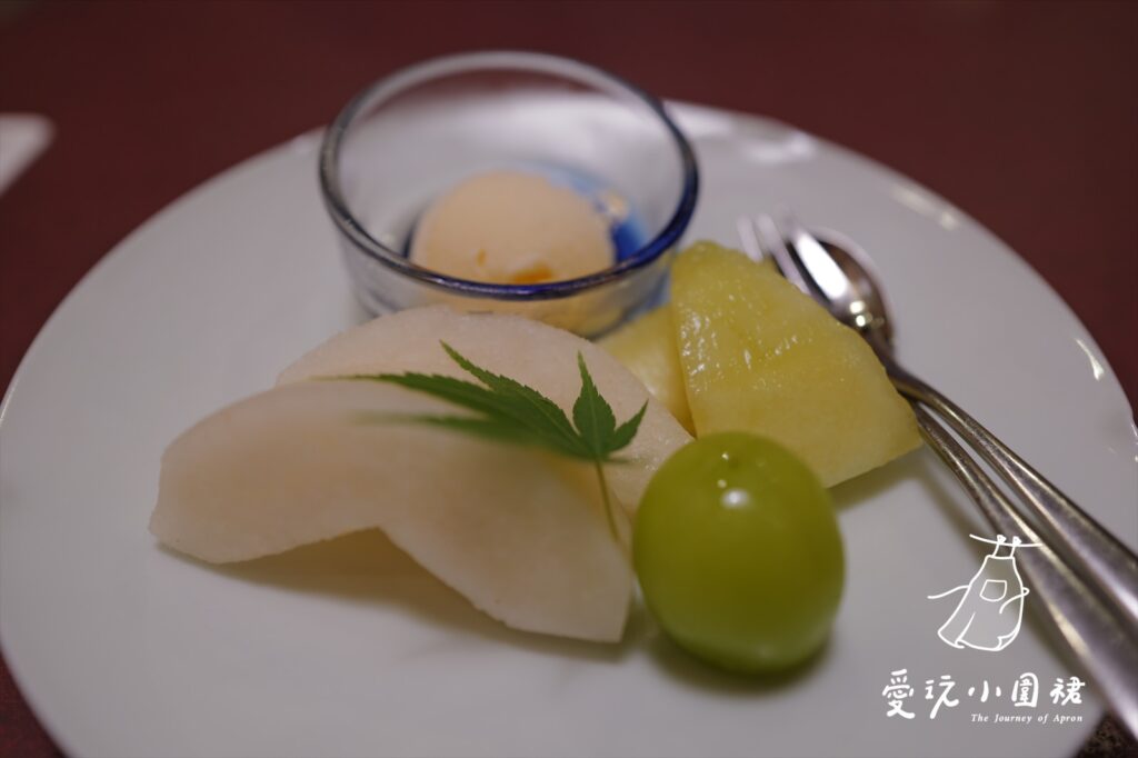 餐後甜點是冰淇淋和水果。
