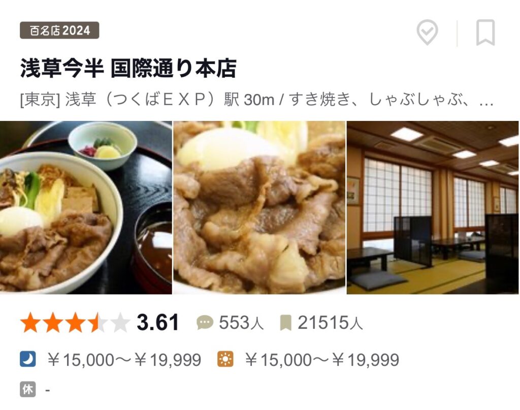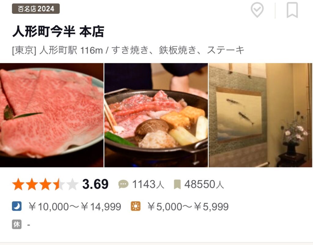 蘋果匠和我是臨時想吃壽喜燒,人形町今半的各分店當時已經預約額滿,在當地親友的協助下幸運訂到「浅草今半」,客觀以‘’食べログ‘’上本店的評分來看, 「人形町今半」是3.69分、「浅草今半」是3.61分,算是伯仲之間,兩家也並列2024年的百名店,吃過之後我倆也對「浅草今半」十分滿意。