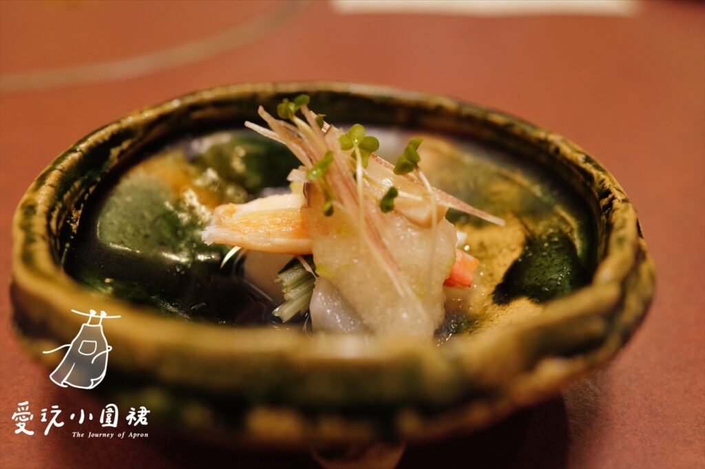 小圍裙先替大家解析一下日式菜單上‘’先付‘’與‘’前菜‘’的差異,‘’先付‘’通常是小小一碟,用以開胃;而‘’前菜‘’的總類與數量較多,已經算是完整餐點的一部分,在高級的日式料理中,這兩者可能會同時出現,並且各自有其獨特的角色和呈現方式。