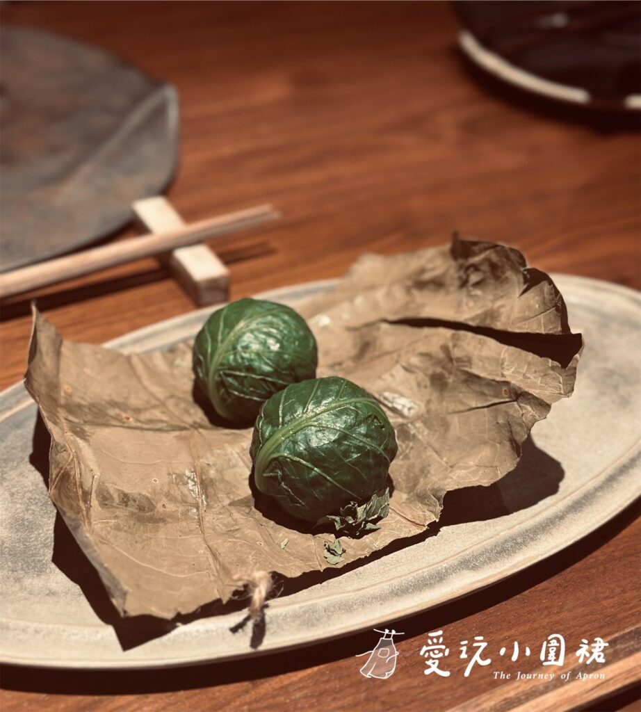 用腐乳和芝麻醃製的豬五花,表述在地人用腐乳醬搭配酸菜白肉的習慣,再利用黑芝麻營造泥濘感;裹在袍子甘藍裡的竟是小吃中不可遺漏的臭豆腐,突破常規的構思讓人拍案叫絕。