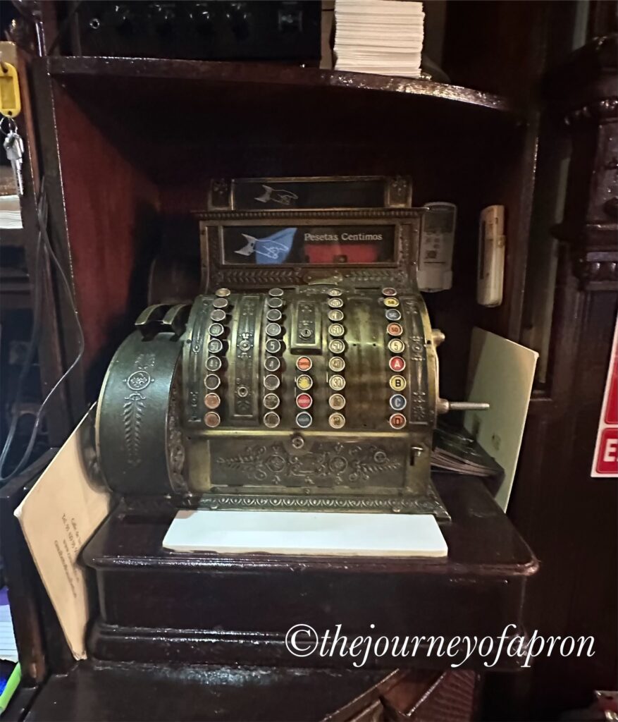 走進Casa Alberto,眼睛不能只盯著食物看,店裡處處是寶藏。天花板上的木雕壁板和青銅燈、牆上的木頭架、Hispania氣泡水機,還有一架自16世紀流傳至今的華麗收銀機,樣樣都稱得上是古董級好貨。
