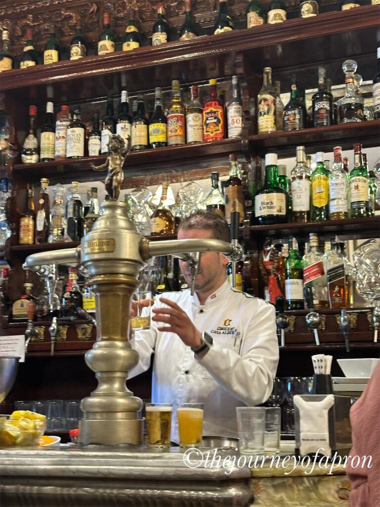 小圍裙建議大家嚐試Casa Alberto的苦艾酒(vermut),現今多數酒館裡賣的苦艾酒都是罐裝,Casa Alberto是極少數提供新鮮苦艾酒的地方,從鎮店之寶~狗頭狀水龍頭的噴嘴現搾現喝,一定更涮嘴。