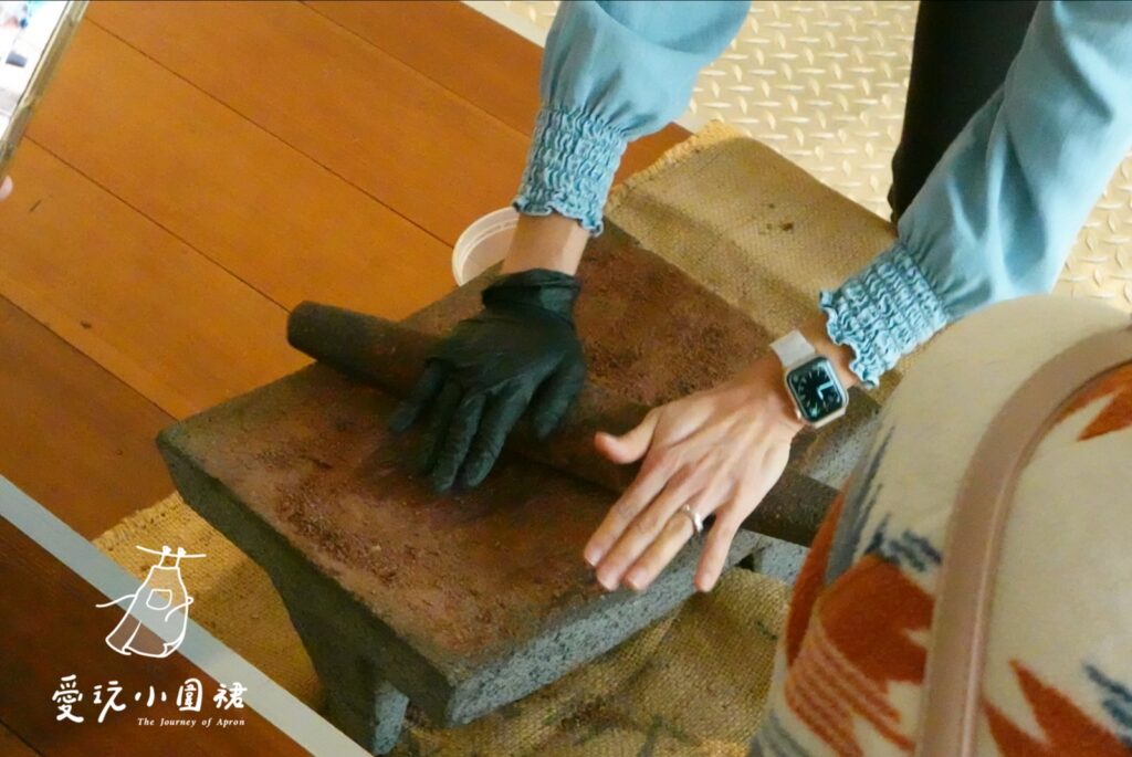 先示範古老的石磨(metate),再切換到現代精煉機(melanger)。看著可可漿從顆粒感變成絲滑濃稠,那畫面真的太療癒。
