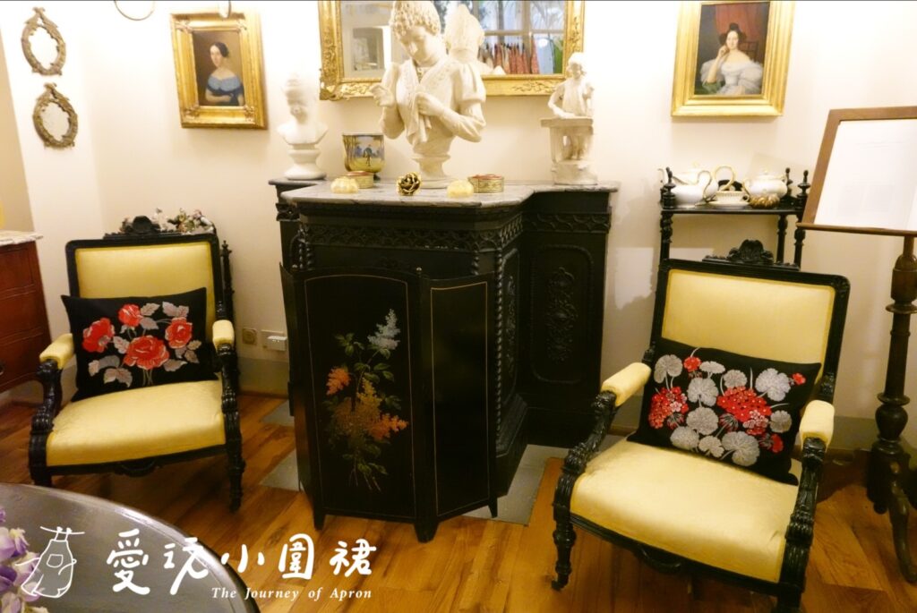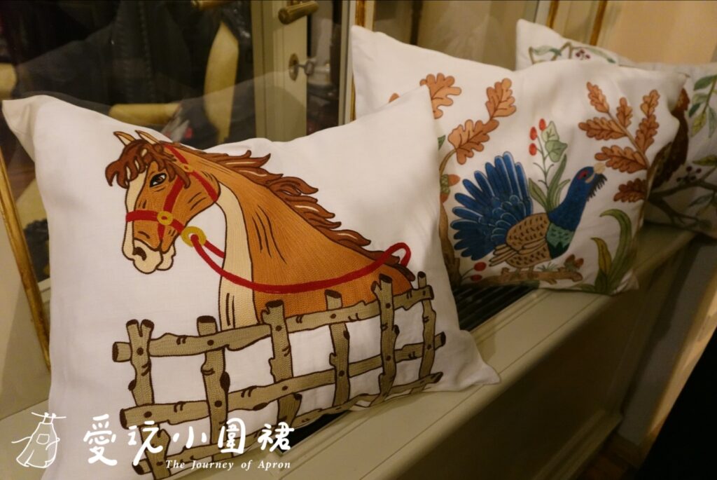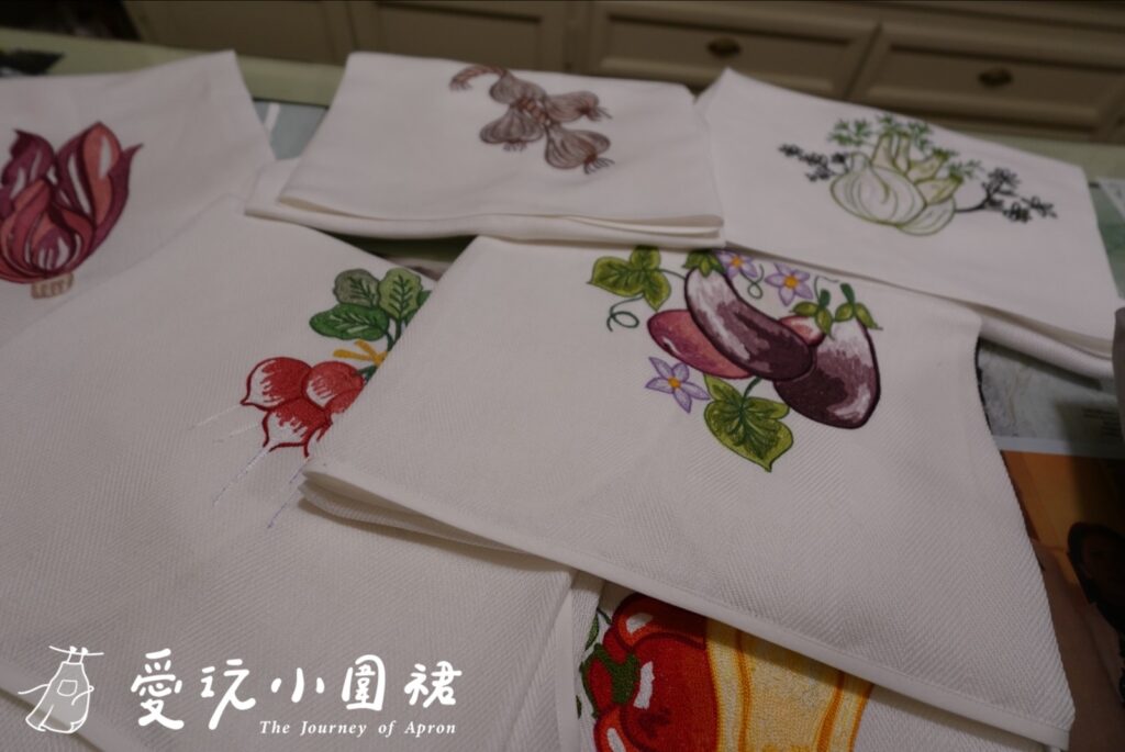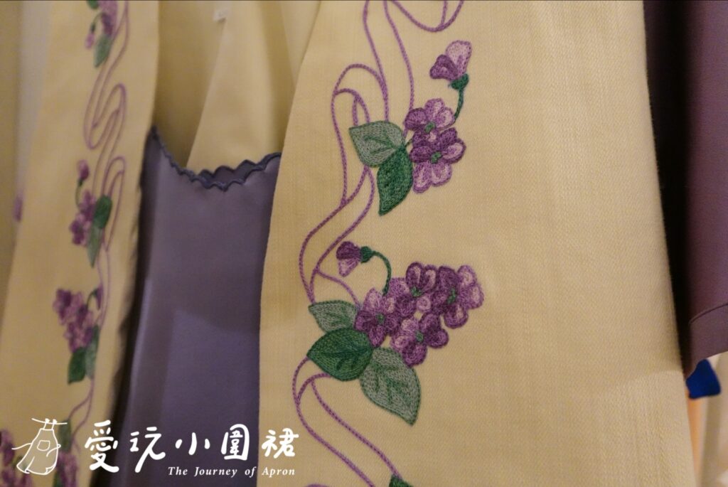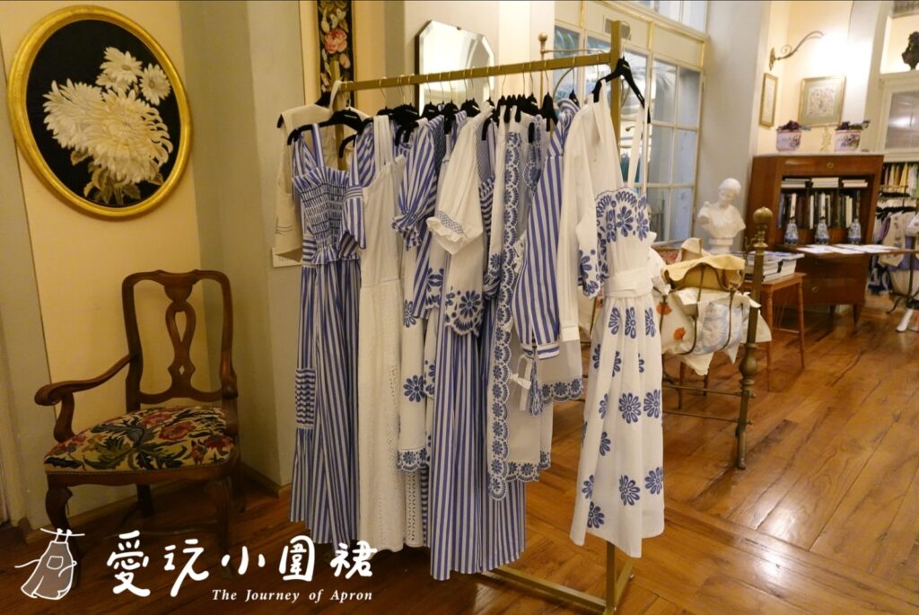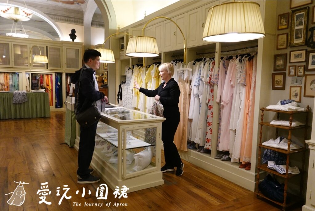 我挑選的是一件番茄圖案刺繡圍裙,這店內每件作品都是繡師一針一線手縫,每朵花瓣都有些微差異,精緻度完全不是機器縫紉的重複性圖案可以比擬,那種溫度與獨特性,就是Loretta Caponi最迷人之處。