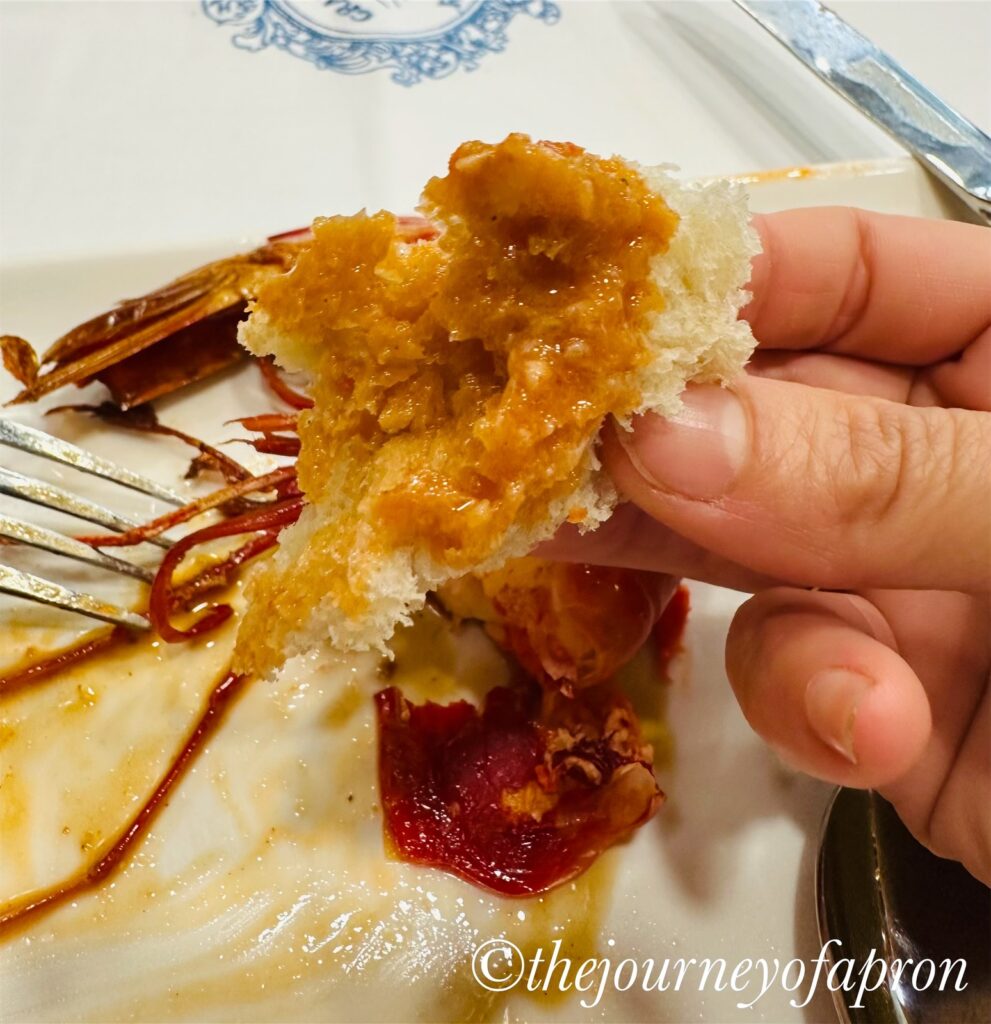 西班牙紅魔蝦是蘋果匠必點的海鮮,蝦膏濃馥甘鮮,大口吸吮實在過癮,再用麵包吸滿滲出的湯髓,這一口精華吃起來極豐盛,但也是意猶未盡啊!