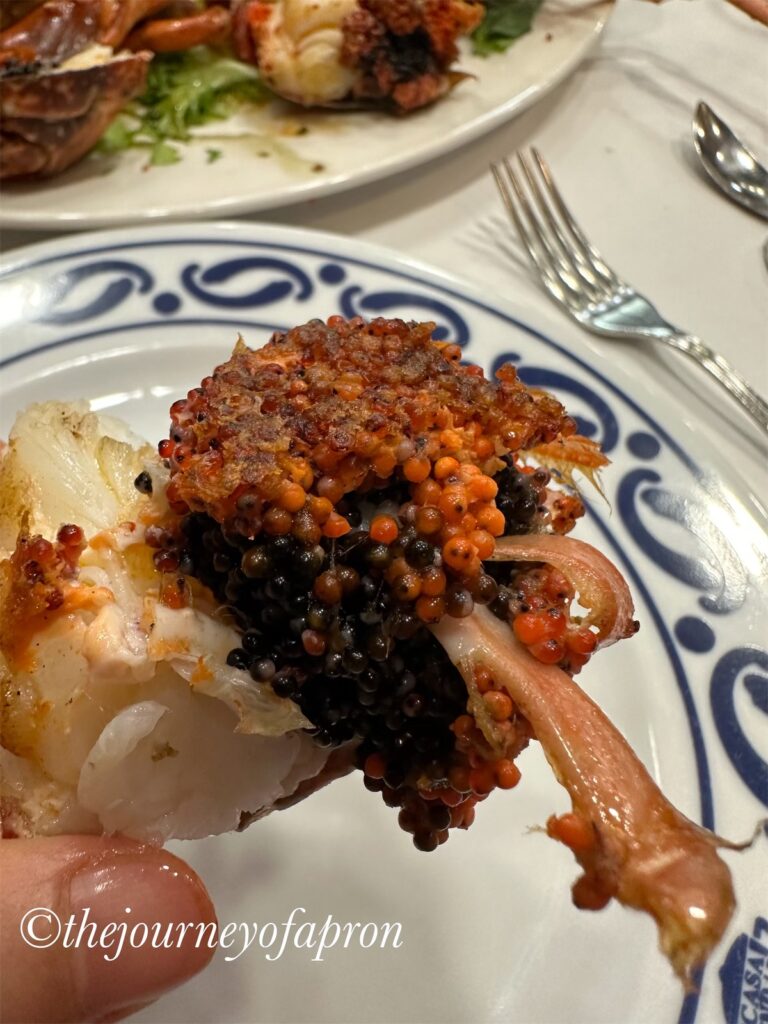 這尾雌龍蝦蝦籽多到爆滿,連鄰桌的當地客人都對著我們說:Congratulation!