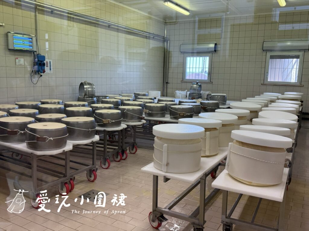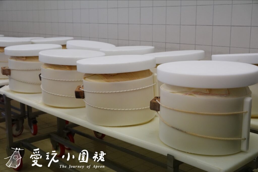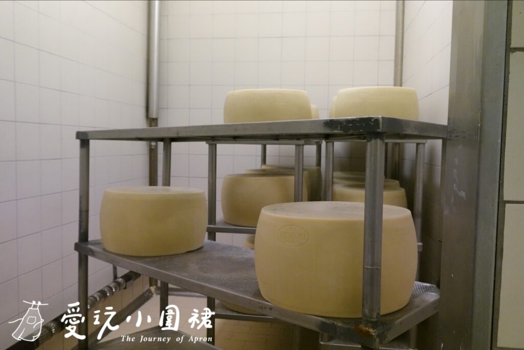 完成烙印後,起司被送入恆溫恆濕的熟成倉庫中靜置數月,期間定期翻轉與擦拭,讓風味自然濃縮、質地漸趨酥脆。